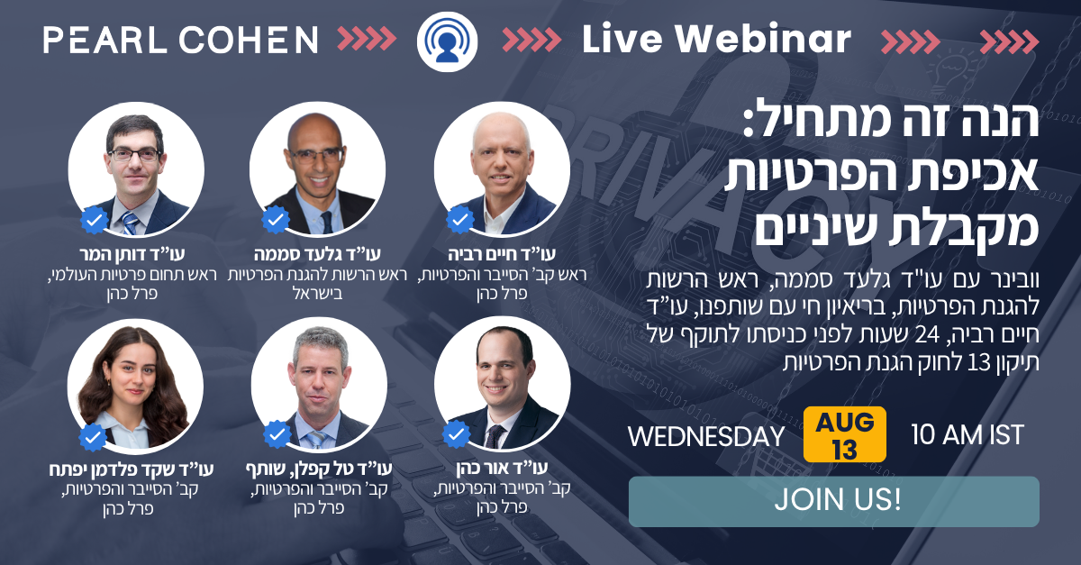 שמחים להזמינכם.ן לוובינר הקרוב שלנו בו נארח את ראש הרשות להגנת הפרטיות במשרד המשפטים, עו"ד גלעד סממה.